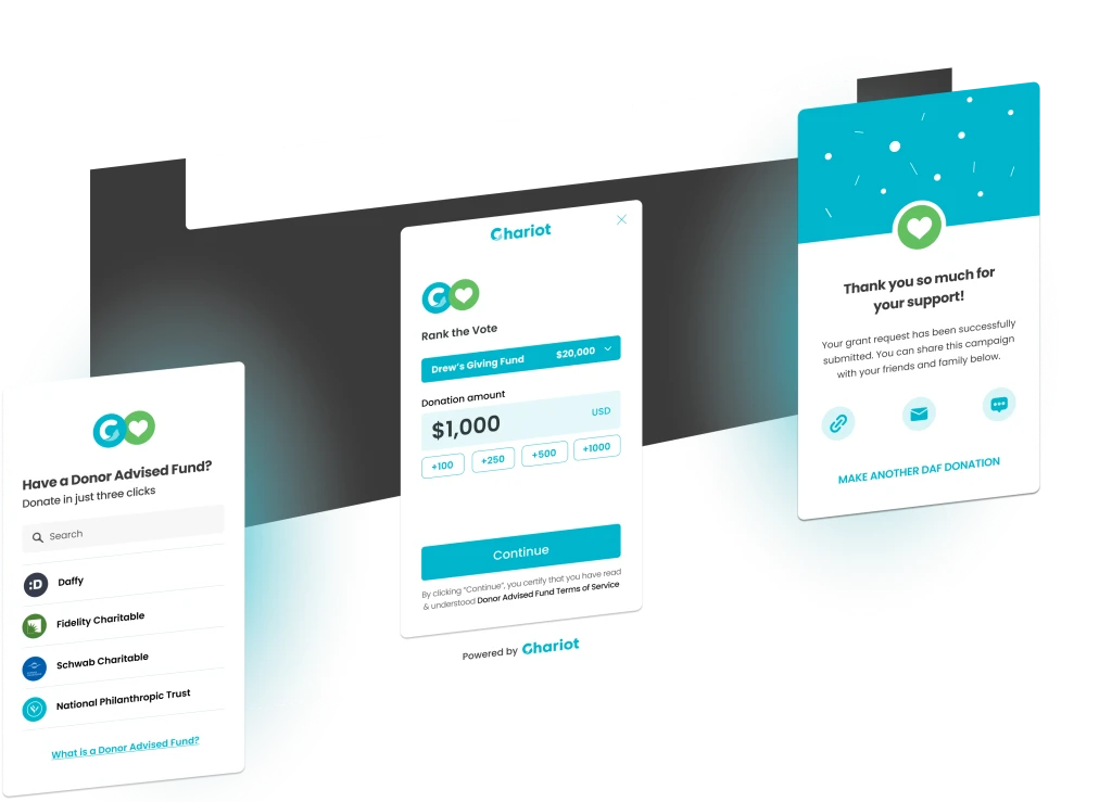 Check out this help article with a step by step guide for Enabling Chariot Donor Advised Funds on your Donor Wrangler donation forms.